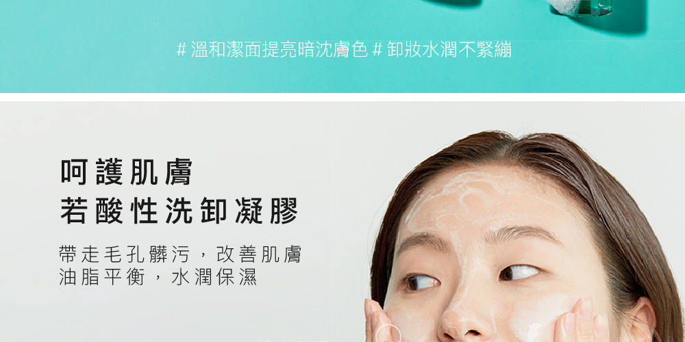 弱酸性潔面露,呵護肌膚,帶走毛孔髒污,