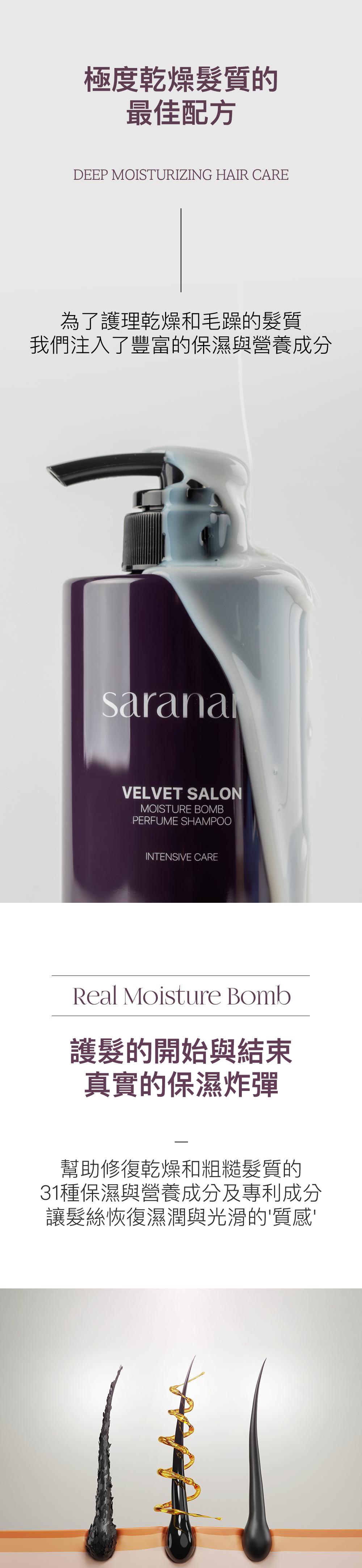 調配的高保濕、專利成分產品,專業調香師的經典香氣為頭髮注入營養和香氣。